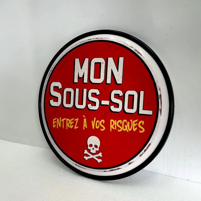 Mon Sous-Sol Tin Wall Sign, 16" Diameter