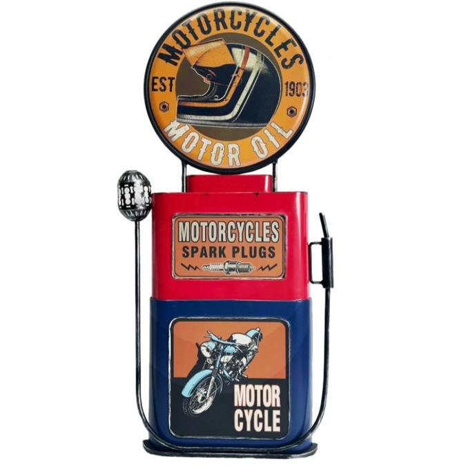 Motorcycles Motor Oil Gas Pump Tin Sign 15-1/4" x 31-1/4"