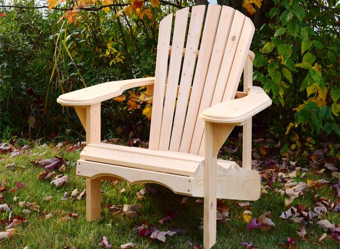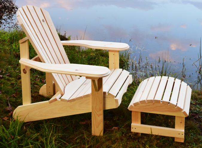 Chaise Adirondack de chalet fabriquée au Canada en bois de Pin de Est Canadien d'Ontario. Bois brute sablé, prêt à assembler, peintre, teindre ou vernir. Toutes quincaillerie pour assemblage est incluse, triple-plaquées au dichromate de zinc et les pièces en bois sont pré-sablées et pré-percées pour assemblage. Sans finition ou scellant, ce produit vieillira avec un ton gris rustique. Dimensions: 36" P x 33" L x 37" H Des frais additionnels de 15$ en sus des frais de transport s'appliquent pour manutention de ce produit due au poids, dimensions et préparation de transport.