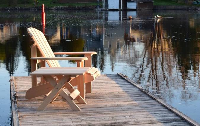 Une chaise et un repose-pieds en bois de pin sont offerts en option avec ajout de prix.