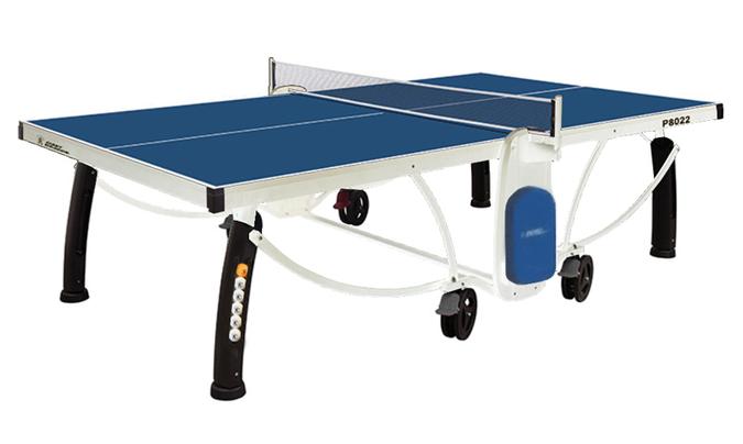 Table de ping pong extérieure Ace Outdoor Match est d'une d'une excellente fabrication. Elle est fabriquée avec un surface de jeu conçue en panneaux composés d'aluminium ACP qui ne rouilleront pas sous la pluie et la neige, ainsi qu'une structure de 15 x 35mm sous la surface, une bâtis sous la table de 25x25mm et 30 x 30mm pour le support des pattes, qui permet une base complète très solide et durable. Ce modèle est munie de pattes pliables, 4 roues dont 2 d’entre-elles peuvent se verrouiller pour être encore plus sécuritaire au rangement en conjonction avec le système de verrouillage de la structure pour jeu solo ou pour position de rangement debout. Ce modèle inclut une section de rangement pour balles intégré dans la patte extérieur et une section de rangement d'accessoires situé dans la section de pattes du milieu de la table.